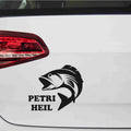 My-Foil.ch der Aufkleber Shop aus der Schweiz für Konturgeschnittene Vinyl Aufkleber. Unser Aufkleber Fisch mit Text Petri Heil für Ihr Auto können Sie auf fast allen Glatten Oberflächen Aufkleber. Personalisieren Sie schnell und einfach Ihren Aufkleber indem Sie Grösse und Farbe, wählen.
